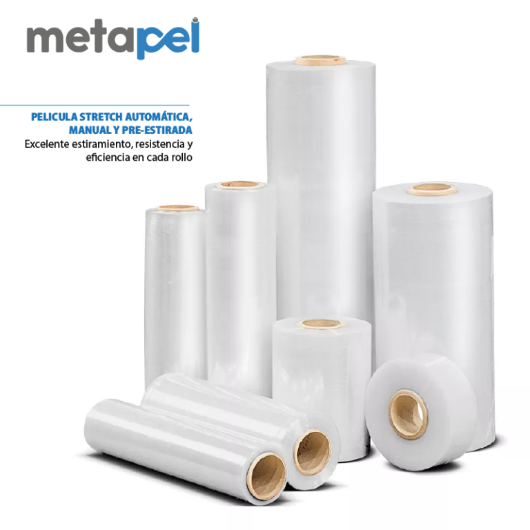 En Metapel fabricamos película stretch de alto desempeño, diseñada para ofrecer excelente estiramiento, alta resistencia, gran adherencia y rendimiento constante. Soluciones que protegen tu carga, reducen mermas y mantienen una operación estable y confiable, incluso en líneas automáticas y procesos de alto volumen.